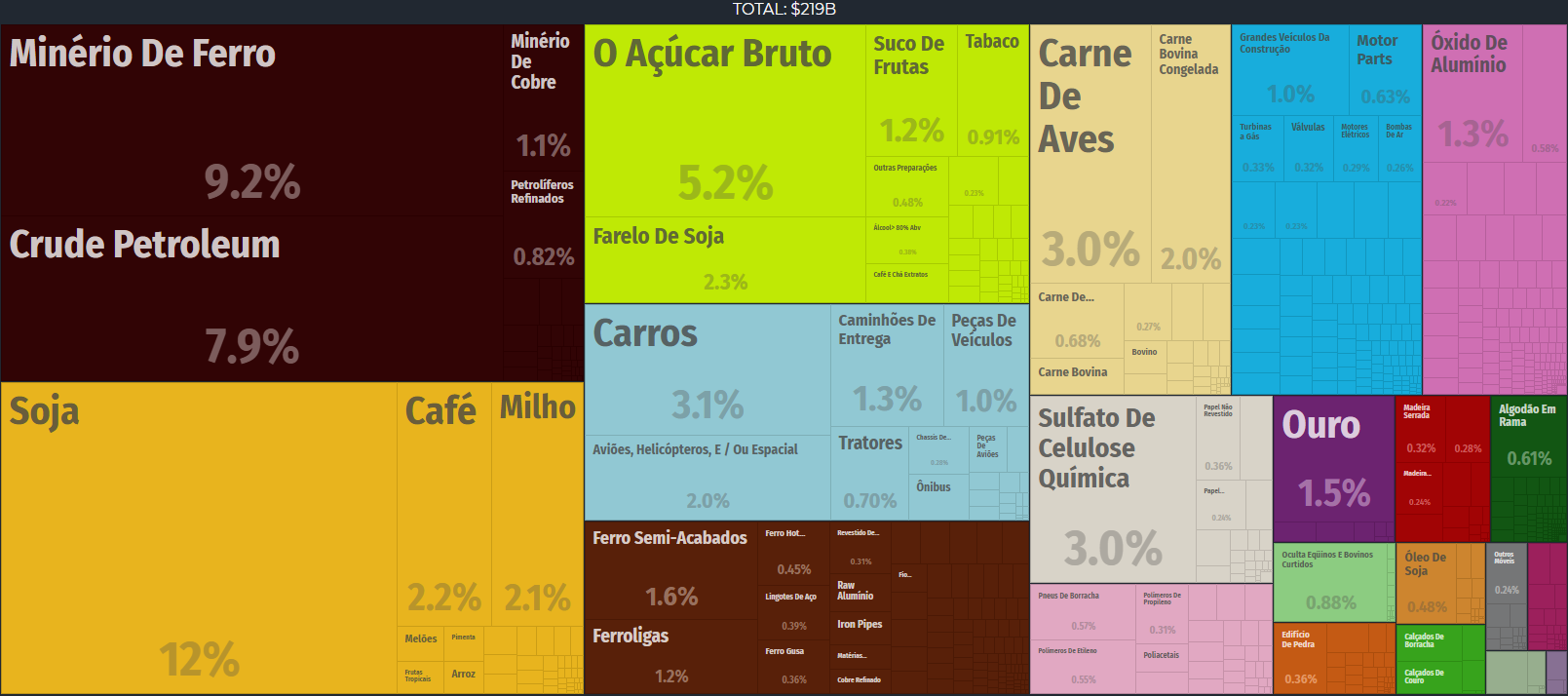 Exportações do Brasil em 2017. Fonte: OEC