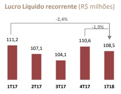 De acordo com a companhia, esse resultado é explicado, principalmente, pela redução da margem financeira, principalmente pelo desempenho da margem financeira com mercado, que apresentou um forte resultado no trimestre anterior, e por menores contribuições da receita do Patrimônio Líquido Remunerado a CDI e da margem financeira com clientes; pelo arrefecimento da receita de serviços, resultado do desempenho das receitas geradas pelo Banco de Investimento, que apresentou um forte resultado no quarto trimestre de 2017, além de uma menor contribuição da receita com tarifas, parcialmente compensado pelo crescimento verificado da receita com garantias prestadas; e também pela queda das despesas relacionadas à Provisão para Devedores Duvidosos e Pessoal & Outras Administrativas.