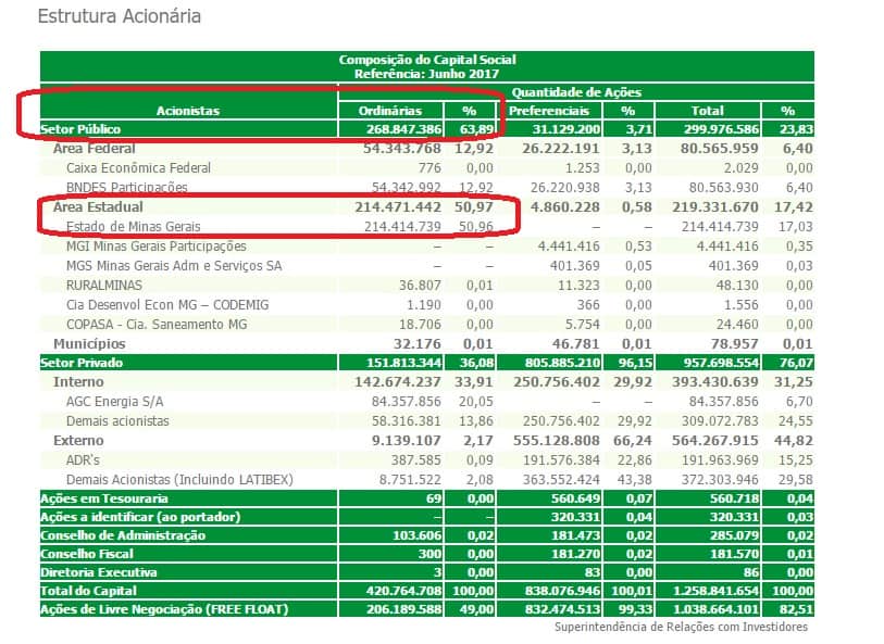 Por ser uma estatal, com 63% de suas ações ordinárias pertencentes ao setor público – mais precisamente ao estado Minas Gerais – preferimos ficar de fora e manter nosso posicionamento de não participar de negócios administrados pelo governo.