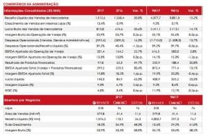 Segundo reportou a companhia, o terceiro trimestre de 2017 foi marcado pelo bom ritmo de vendas, favorecido pela correta execução das operações e pelo melhor fluxo de clientes nas lojas, levando ao crescimento de 20,0% na receita líquida de mercadorias e de 13,4% das vendas em mesmas lojas.