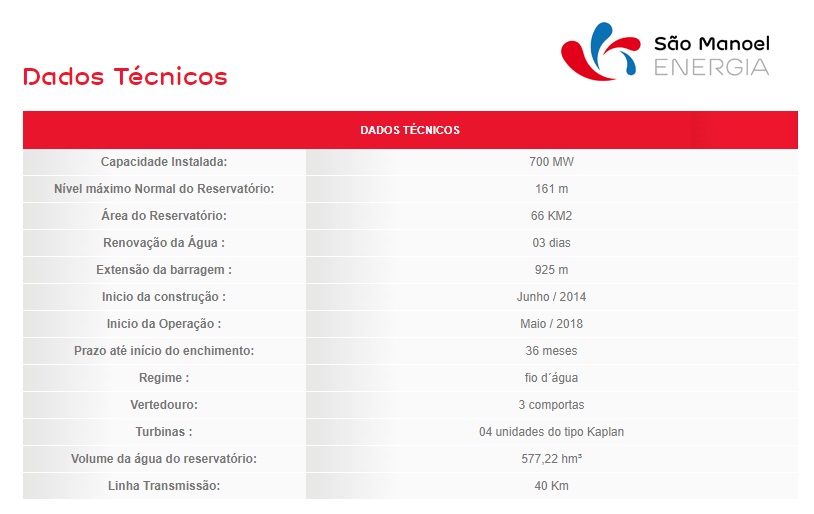 Com a Declaração Comercial de Operação (DCO) de tal unidade, a UHE São Manoel encontra-se 100% em operação e seu contrato CCEAR (Contrato de Comercialização de Energia no Ambiente Regulado) passa a vigorar a partir de tal data.