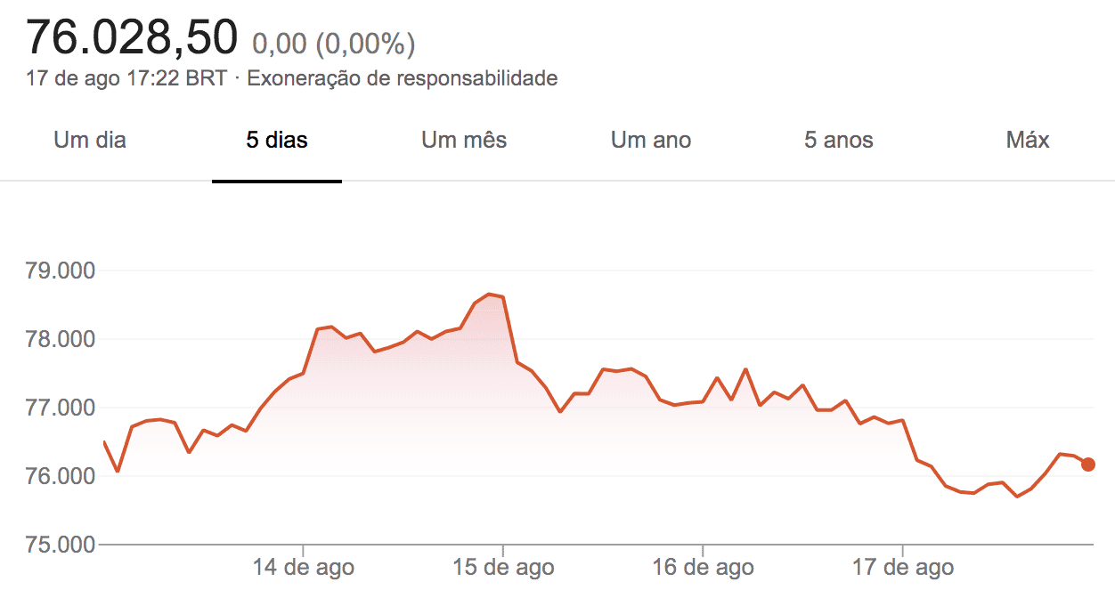 O índice Ibovespa encerrou a semana registrando 76.029 pontos, o que representou uma queda de -1,03% do pregão da última sexta-feira (17). No acumulado da semana, a sua variação foi também negativa, porém em -0,63%, ao passo que, no acumulado do ano de 2018, o índice também oscilou para baixo em -0,49%.